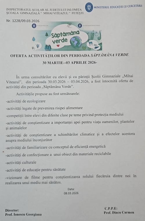 Saptamana verde Scoala altfel Situatii financiare Secretariat si transparenta